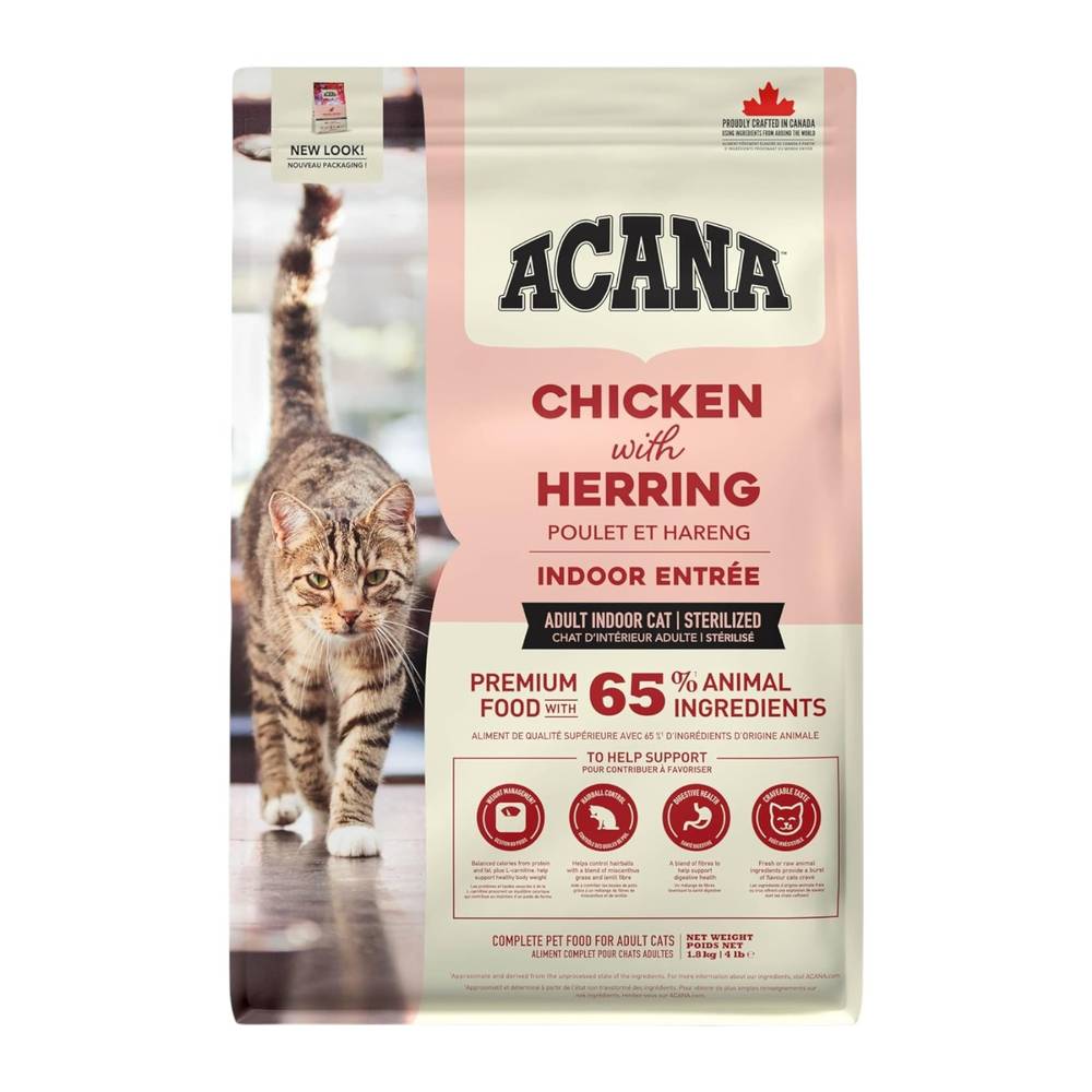 أكانا طعام جاف للقطط البالغة المعقمة، بالدجاج وسمك الرنجة، 1.8 كجم.
