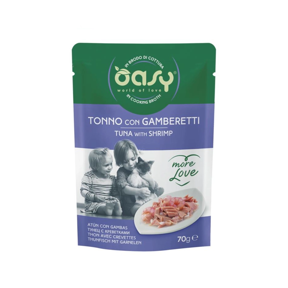 أوزي (Oasy) طعام رطب للقطط – تونة مع روبيان في المرق – ظرف 70 جرام