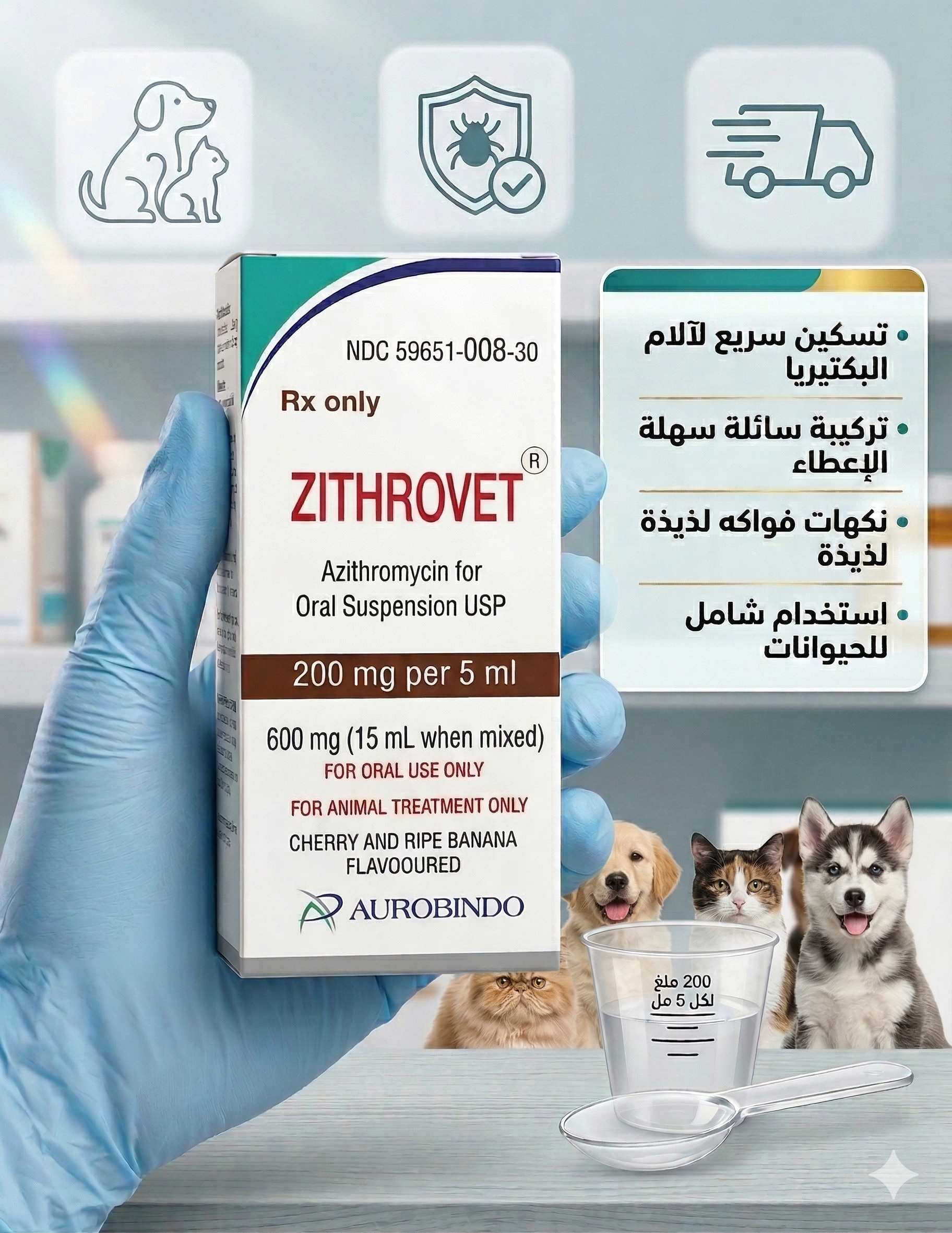 زيثر وفيت (Zithrovet) – المضاد الحيوي الأسرع مفعولاً لعلاج الالتهابات التنفسية والمعوية للحيوانات 200 جرام