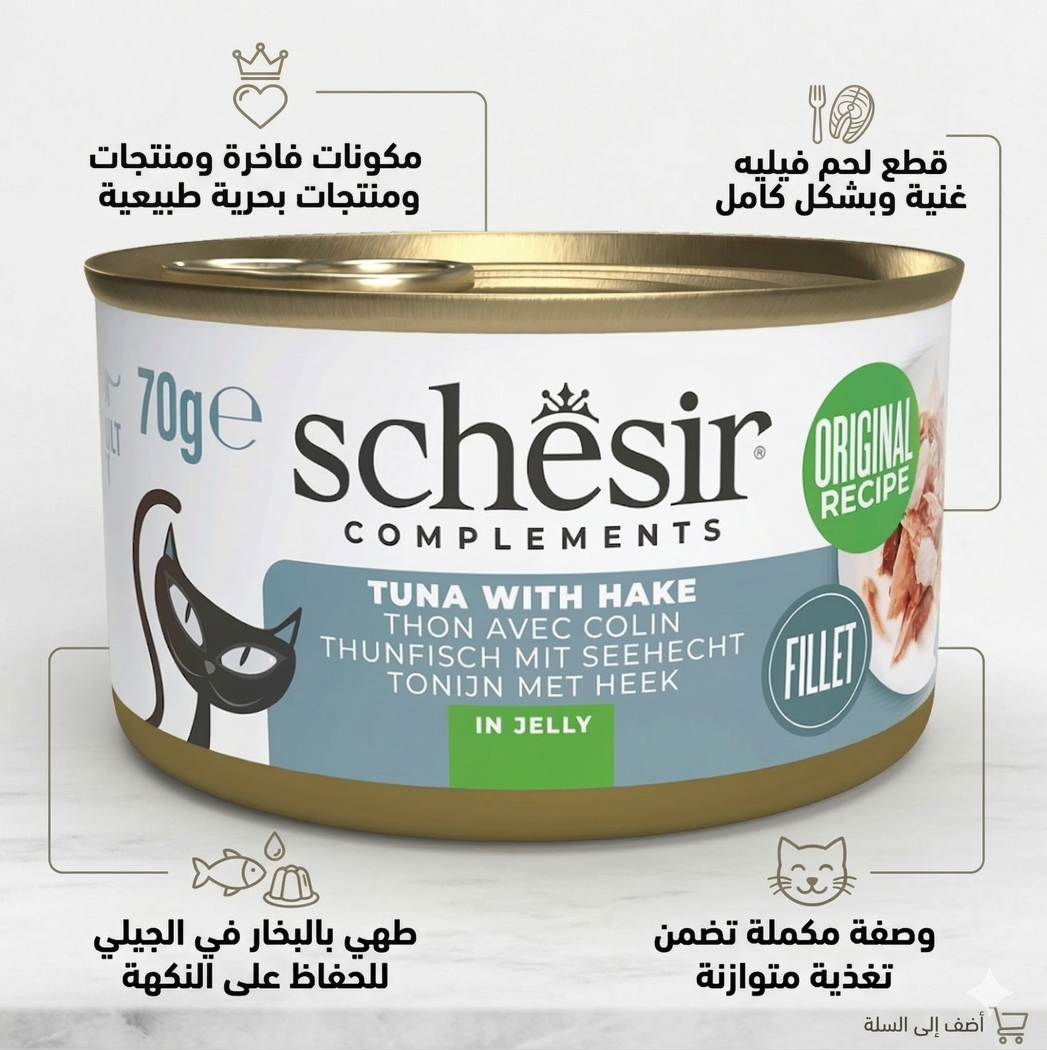 شيزر (Schesir) طعام رطب للقطط – تونة مع سمك الهيك – علبة 70 جرام