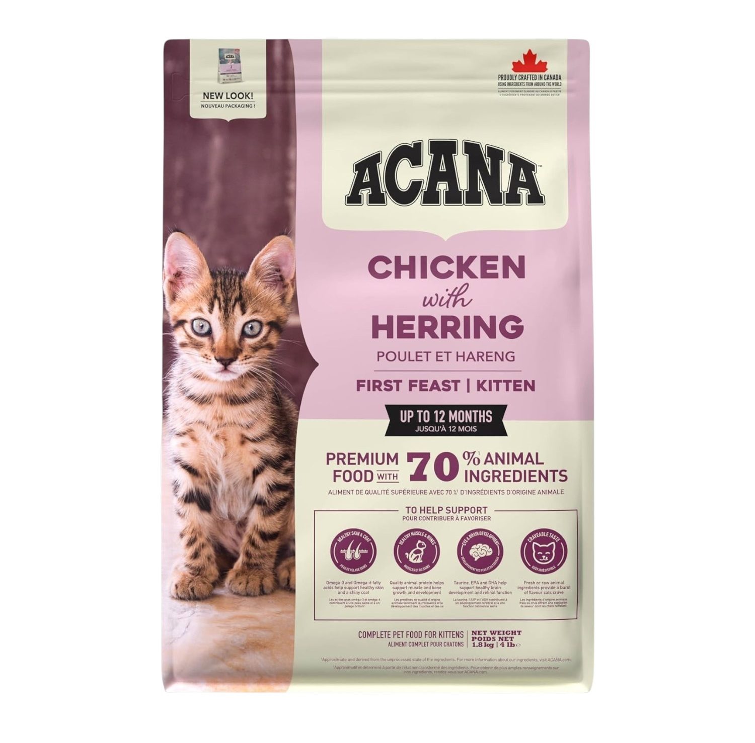 طعام جاف للقطط الصغيرة (كيتن) من أكانا، بالدجاج وسمك الرنجة، 1.8 كجم.