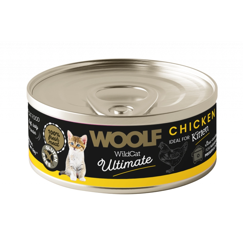 تأسيس صحي لقطتك الصغيرة بمذاق الدجاج الطبيعي! يقدم “وولف” وصفة الدجاج الغنية بالبروتين والمصممة خصيصاً لتناسب الجهاز الهضمي الحساس للقطط الصغيرة في مراحل نموها الأولى، مع قوام باتيه ناعم جداً يسهل عملية الأكل.