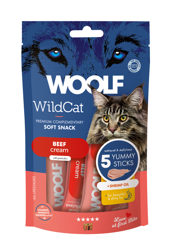 وولف (Wolf) مكافآت كريمية للقطط – لحم بقري مع زيت الروبيان – 5 × 14 جرام