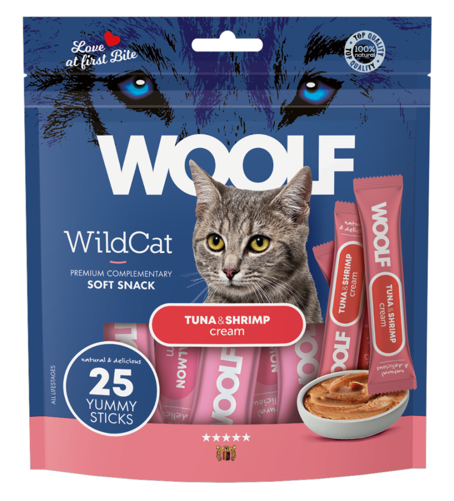 المذاق البحري الفاخر في عبوة اقتصادية ضخمة! تقدم “وولف” مزيجاً لا يقاوم من التونة الصافية وقطع الروبيان الشهية، في قوام كريمي ناعم يمنح قطتك تجربة تذوق ملكية وترطيباً مثالياً في كل ظرف.