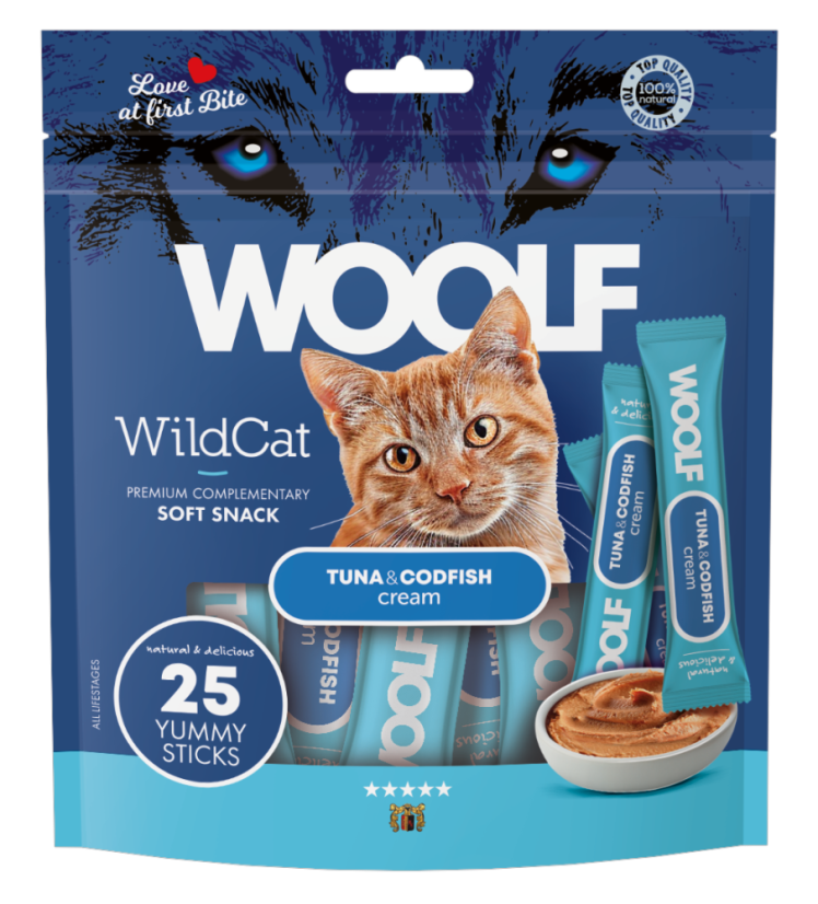وولف (Wolf) مكافآت كريمية للقطط – تونة وسمك القد – العبوة العائلية 25 × 14 جرام