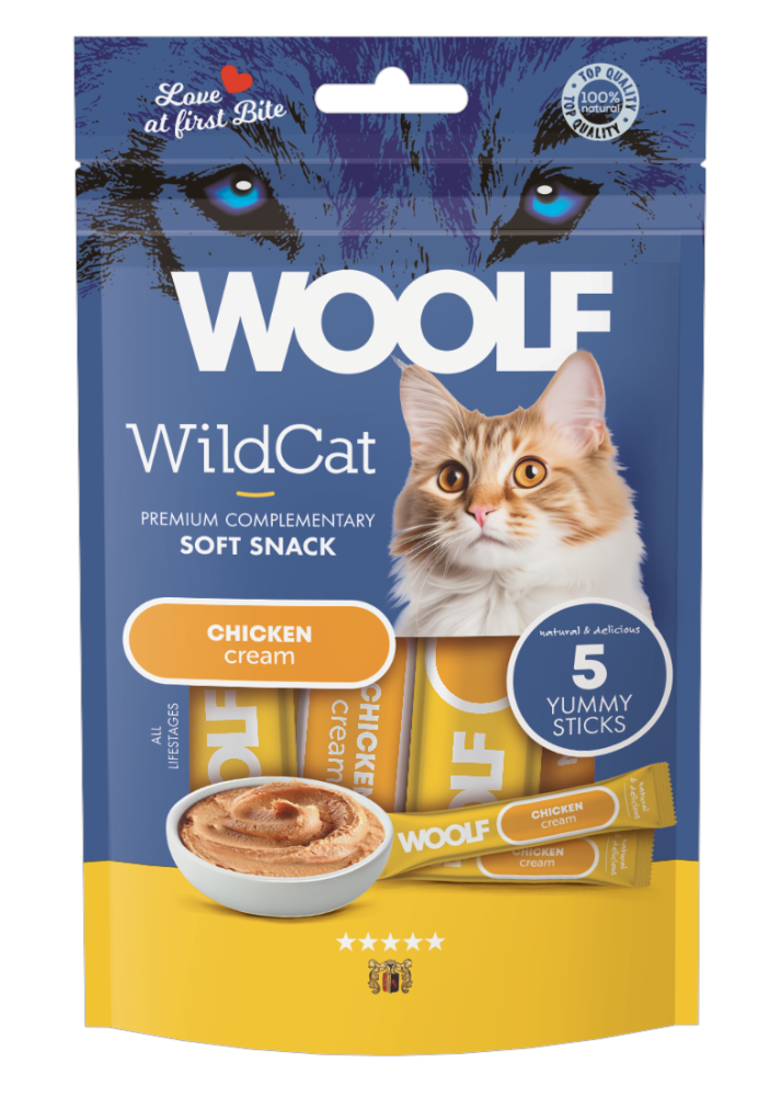 المذاق الكلاسيكي الذي تعشقه القطط! تقدم “وولف” مكافآت كريمية رطبة محضرة من صدور الدجاج عالية الجودة، لتوفر لقطتك تجربة تذوق غنية وسهلة الهضم، مثالية للتدليل اليومي أو كمكافأة على السلوك الجيد.