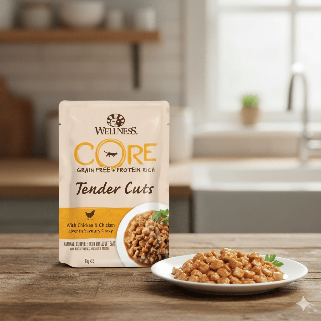 قدّم لقطتك وجبة شهية ومتوازنة مع أظرف Wellness CORE المصممة بعناية لتوفير تغذية عالية الجودة من مكونات طبيعية، بدون أي إضافات صناعية.